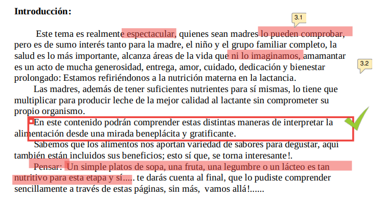 La pertenencia a estos horizontes discursivos alternos a la académica demanda de los docentes una adecuación pedagógica a esa realidad semiótica y, a su vez, la posibilidad de generar continuidades con los mundo-estudiantes anteriores a la universidad. La distancia entre la inmediatez de la oralidad y la planificación intencional de la escritura se manifiesta en producciones en las cuales persisten rasgos locales y expresiones informales, que requieren procesos de revisión con recomendaciones léxicas específicas que orienten a la adecuación lingüística propia del registro académico formal. Traemos a continuación un ejemplo presente en el informe de lectura solicitado: