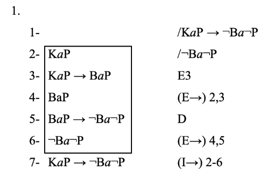 1. (Ka(P)) ˄ (¬Ba(P)) /⊥