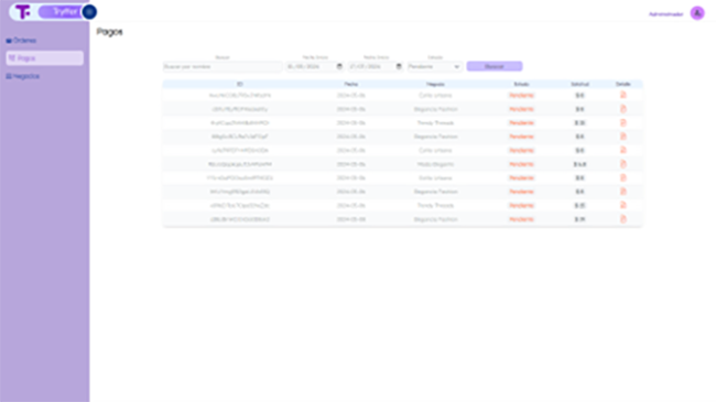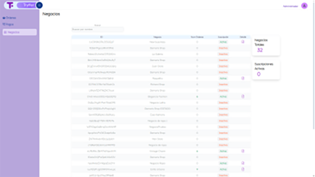 Para gestionar todos los negocios de manera organizada, se ha implementado un acceso de administrador. Este acceso permite al administrador gestionar todas las órdenes, realizar pagos a los negocios y supervisar la gestión de suscripciones de los mismos. Esta funcionalidad asegura una administración eficiente y ordenada de las operaciones comerciales dentro de la plataforma.