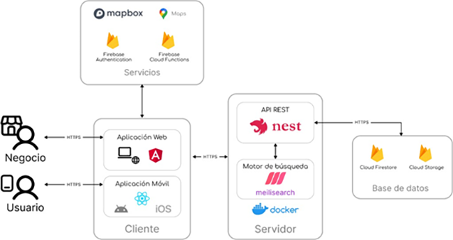 La idea central del proyecto es aprovechar los avances tecnológicos y herramientas en la nube, como Cloud Firestore, Digital Ocean y MeiliSearch, para potenciar el crecimiento empresarial de manera innovadora y con bajo costo. La integración de estas tecnologías y la creatividad se erigen como pilares fundamentales, ofreciendo una experiencia mejorada tanto para las empresas como para los consumidores.