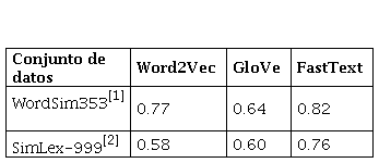 Conjuntos de datos: WordSim353 y SimLex-999.