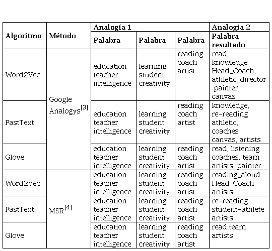 Conjuntos de datos: Google Analogy y Microsoft Research Paraphrase (MSR).