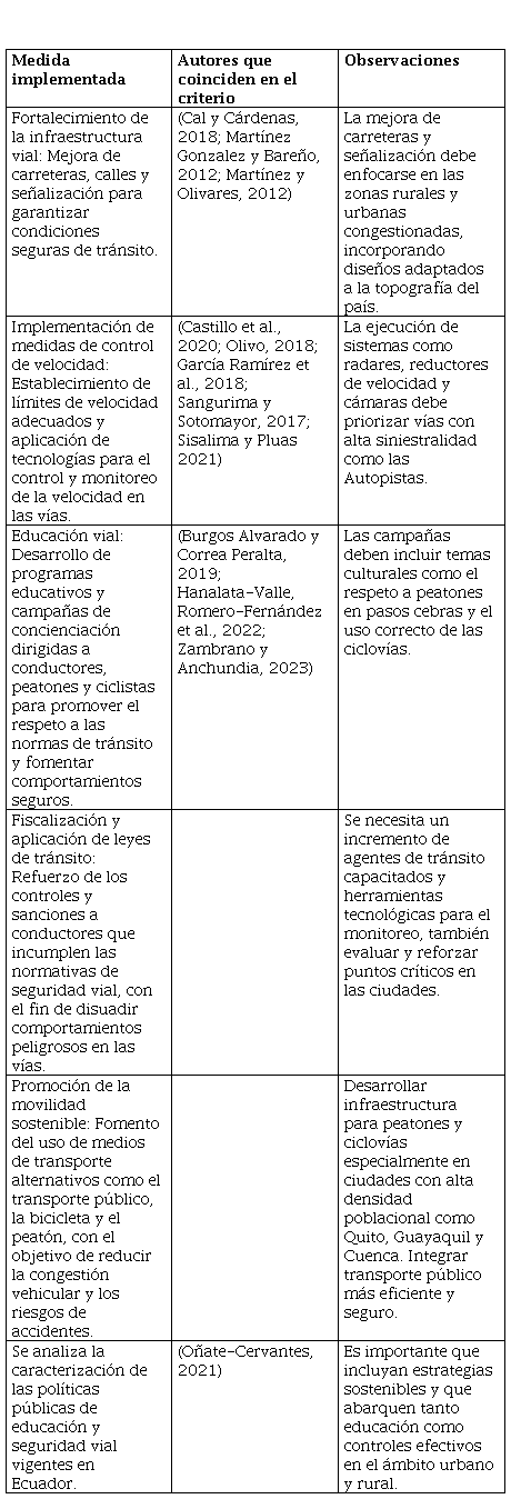Analysis of road safety interventions to reduce traffic accidents in Ecuador