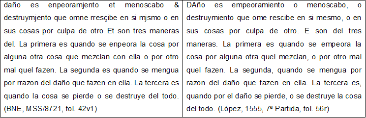 Por consiguiente, esta aproximación permite establecer que el MSS/8721 de la BNE no es una copia extractada de la Séptima Partida, sino de una copia mutilada, que ha perdido a lo largo de su vida, pero siempre antes de la última encuadernación en el siglo XIX, dieciocho folios.7