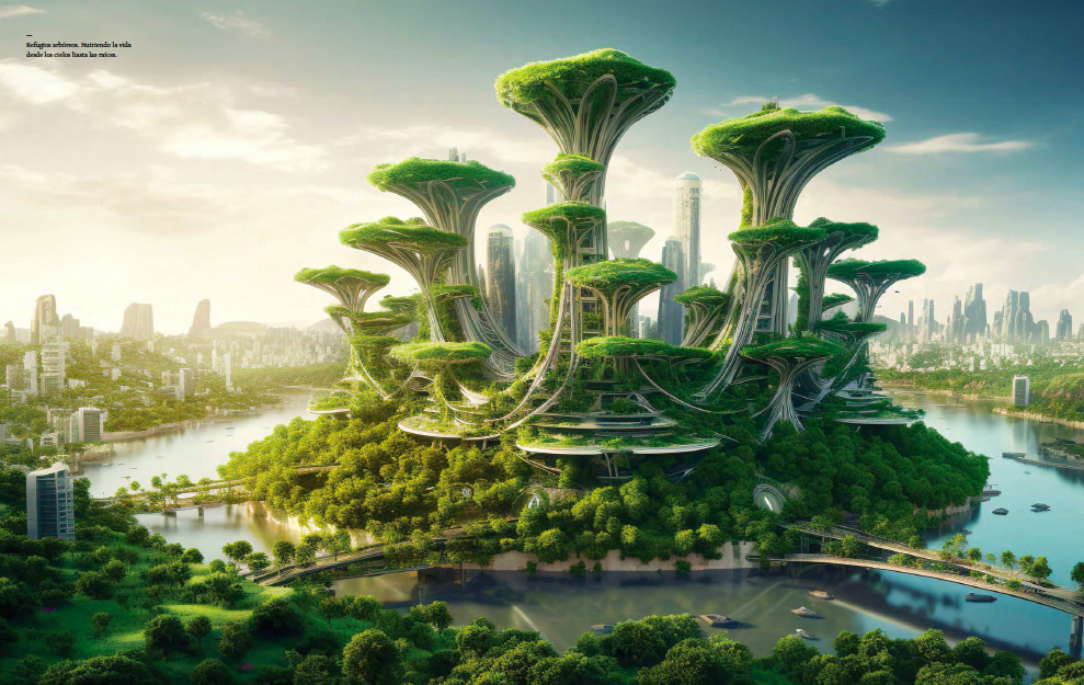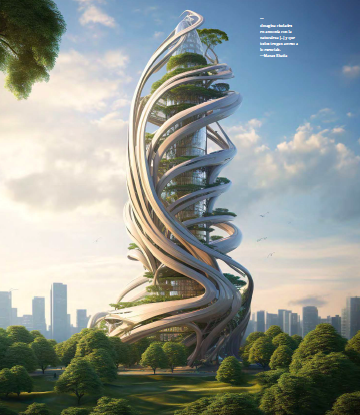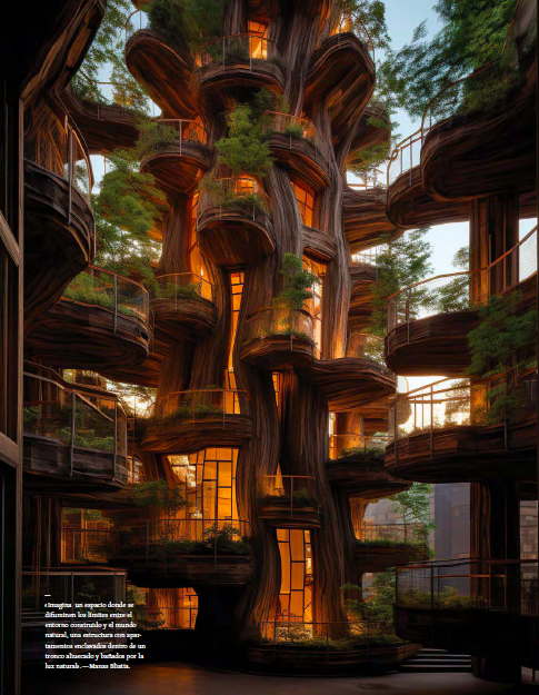 IAManas Bhatia (Dehradun, India) es arquitecto y artista digital. Utiliza la inteligencia artificial (ia), para imaginar un futuro en el que los edificios son estructuras biomiméticas que crecen y se desarrollan como seres vivos. En sus imágenes, que crea con MidJourney, propone una realidad donde los procesos naturales se integran con la acción humana, de una manera orgánica y sostenible.