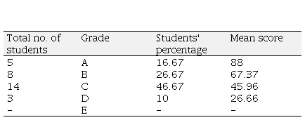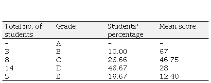 Utilizing aforementioned point rank scale, the students were segmented into different grades based on their mean score and percentage. Furthermore, the students' speaking proficiency was evaluated by segregating the language into three categories, namely vocabulary, grammar, and content.