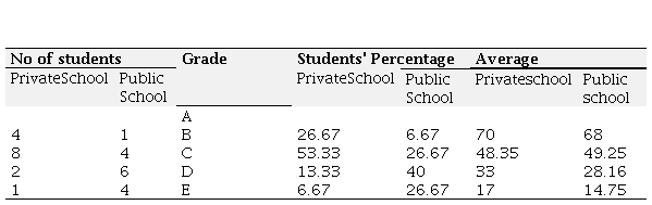 In fact, almost every sentence of public school students was found to be grammatically incorrect. v. The students of private schools performed better than those of public schools in terms of using tense.