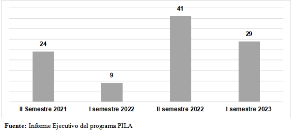 Estas estrategias de divulgación y de trabajo conjunto con las distintas dependencias académicas y administrativas, han permitido que el programa PILA sea reconocido por la comunidad universitaria y, por ende, ha posibilitado la siguiente tasa de participación estudiantil en modalidad de movilidad saliente en las convocatorias correspondientes al II semestre 2021, I semestre 2022, II semestre 2022 y I semestre 2023: