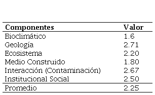 La evaluación final del sitio fue determinada por el promedio de los valores registrados por cada componente.