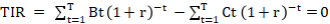Donde Io= inversión inicial; Cn= flujo de caja; (1 + TIR) = factor de actualización; n = período de capitalización (tiempo); N = número de años de vida útil del proyecto.