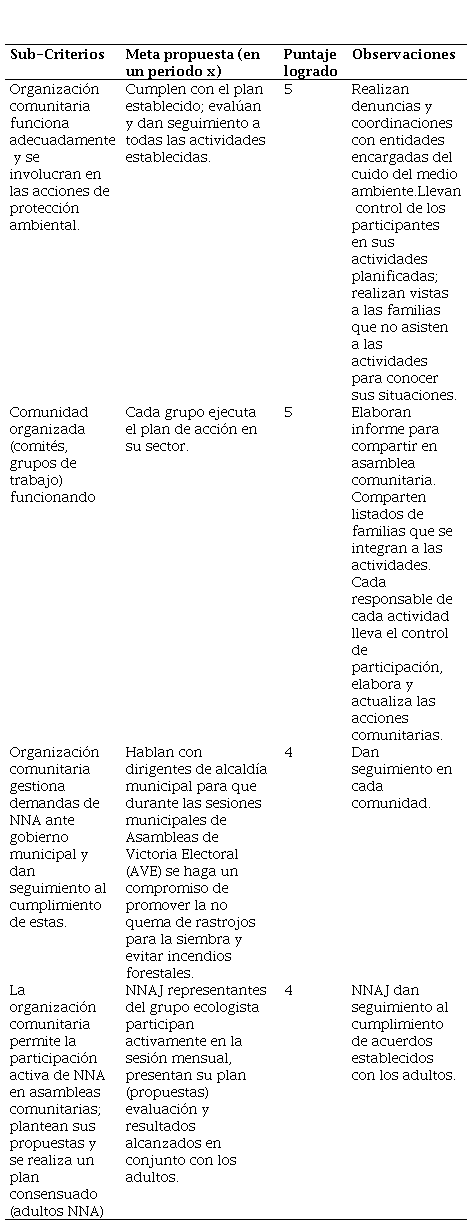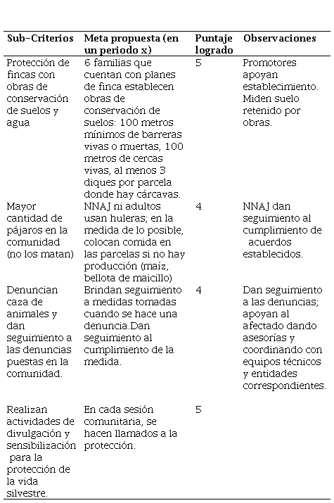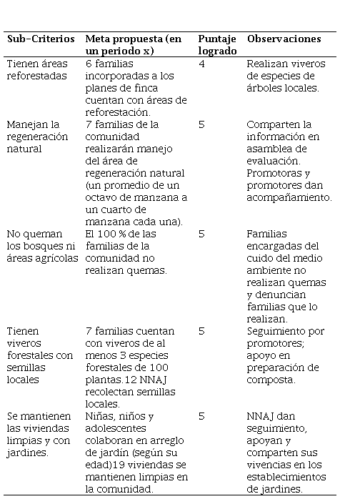 En la siguiente tabla, se presenta un consolidado de los avances en el cumplimiento de los criterios de comunidades verdes y resilientes al cambio climático en el municipio de Las Sabanas, departamento de Madriz.