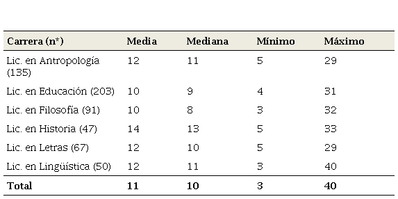 Si bien las carreras están previstas para realizarse en cuatro años, hay personas que egresaron de las licenciaturas en Lingüística y Filosofía en menos tiempo (mínimo Tabla 2), debido a que revalidaron asignaturas por haber cursado otras carreras terciarias. Si se observan los máximos (Tabla 2) y los diagramas de caja de tiempo de egreso, se ve que en todas las carreras hubo personas que estuvieron durante dos décadas o más en la facultad hasta la titulación, alcanzando aproximadamente 30 años con calidad de estudiantes, con un caso extremo de la Licenciatura en Lingüística de alguien que egresó 40 años después de su ingreso a la FHCE.