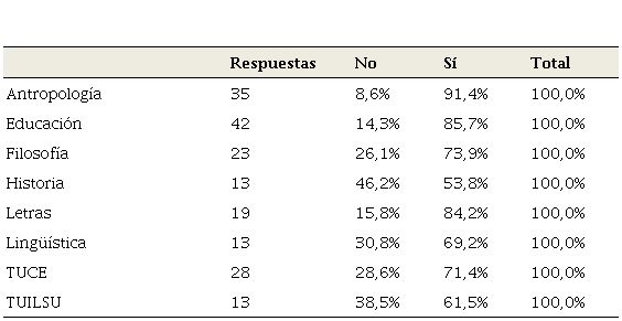En este sentido, es interesante observar cómo, de los resultados de la encuesta detallada en secciones anteriores, se observa que el mayor grado de insatisfacción sobre los procesos formativos se expresa dentro del universo de egresados de antropología, disciplina que posee un potencial desarrollo de las trayectorias profesionales más consolidado. Cuando se les consulta si existen elementos pedagógicos a mejorar en sus procesos formativos, un 91,4% contesta afirmativamente. Esto se puede deber al reconocimiento de vacíos o debilidades a nivel formativo en términos de competitividad con egresados de otras disciplinas del área social o afines.