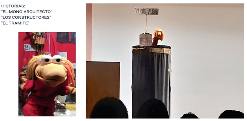 Una de las principales ventajas del uso de títeres radica en su capacidad para simplificar conceptos complejos. En la figura 1 se muestra la imagen de la escena “El mono arquitecto”, Martín sostiene que: