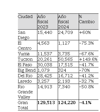 Durante los últimos tres años de la administración del presidente Biden, las ciudades fronterizas del norte de México, especialmente Tijuana, Nogales, Ciudad Juárez y Piedras Negras, han experimentado una situación propicia para una crisis humanitaria. Esto se debe al elevado número de migrantes detenidos por CBP y regresados a estas ciudades (noviembre 2023), como se explicará en el siguiente apartado.